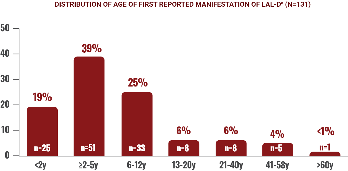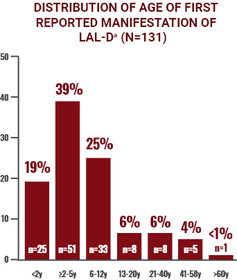 LAL-D primarily presents in pediatric patients, however, many older patients with LAL-D may be misdiagnosed or undiagnosed2