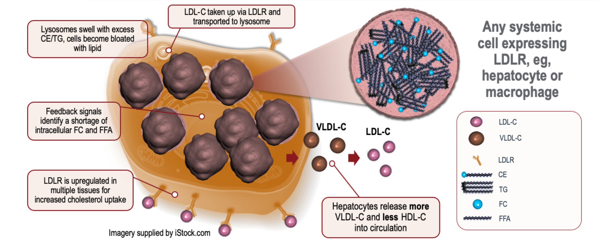 Image adapted from Reiner Ž, et al. Atherosclerosis. 2014;235(1):21-30 and Grabowski G, et al. The Online Metabolic and Molecular Bases of Inherited Disease. New York, NY: McGraw Hill;2012.